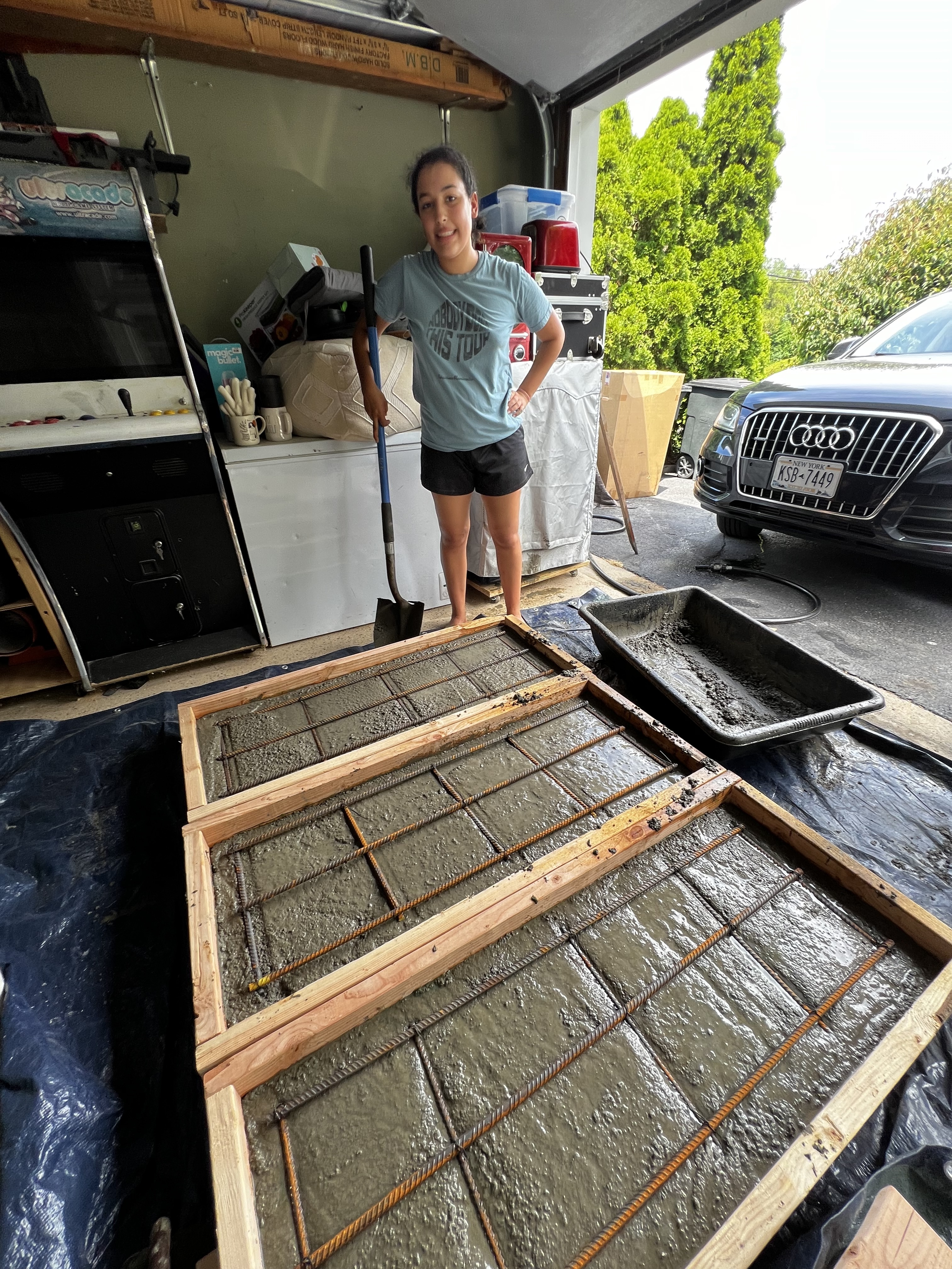 I took on the task of lifting the slabs by myself. Each one 300 lbs !!! No prior concrete experience to draw upon and excited to get started I built the forms in my garage. Then I realized how heavy they were! Fortunately I had a cart/handtruck to move them to backyard. Was a task loading the cart and wheeling slabs to my location. Then hoisting onto the base alone was impossible. 2 hours just to transport and lift just one!! I thought of the creation of the pyramids. Built a ramp. Measured the angles cut a frame from 2x4 wood and levered the slabs up position from the bottom of the ramp with a 2x4. Next two slabs took less than an hour. My contribution, if need to lift slabs onto base build a ramp. Much easier and a hundred times safer. The first slab took 2 hours because all my attempts had to protect me from having it fall one me. If I had to do it again building slabs a in place seems easier. If this is not possible, build close to final location (hard to move) use ramp and a 2x4 lever. simple, sturdy and much safer. Probably much safer with ramp because you don’t attempt to lift slabs at all. You just tilt, slide, rotate. Never lift. Slabs are always on a sturdy base. Ground to sturdy ramp, slide onto sturdy base. Risk of hurting yourself and others much reduced.
