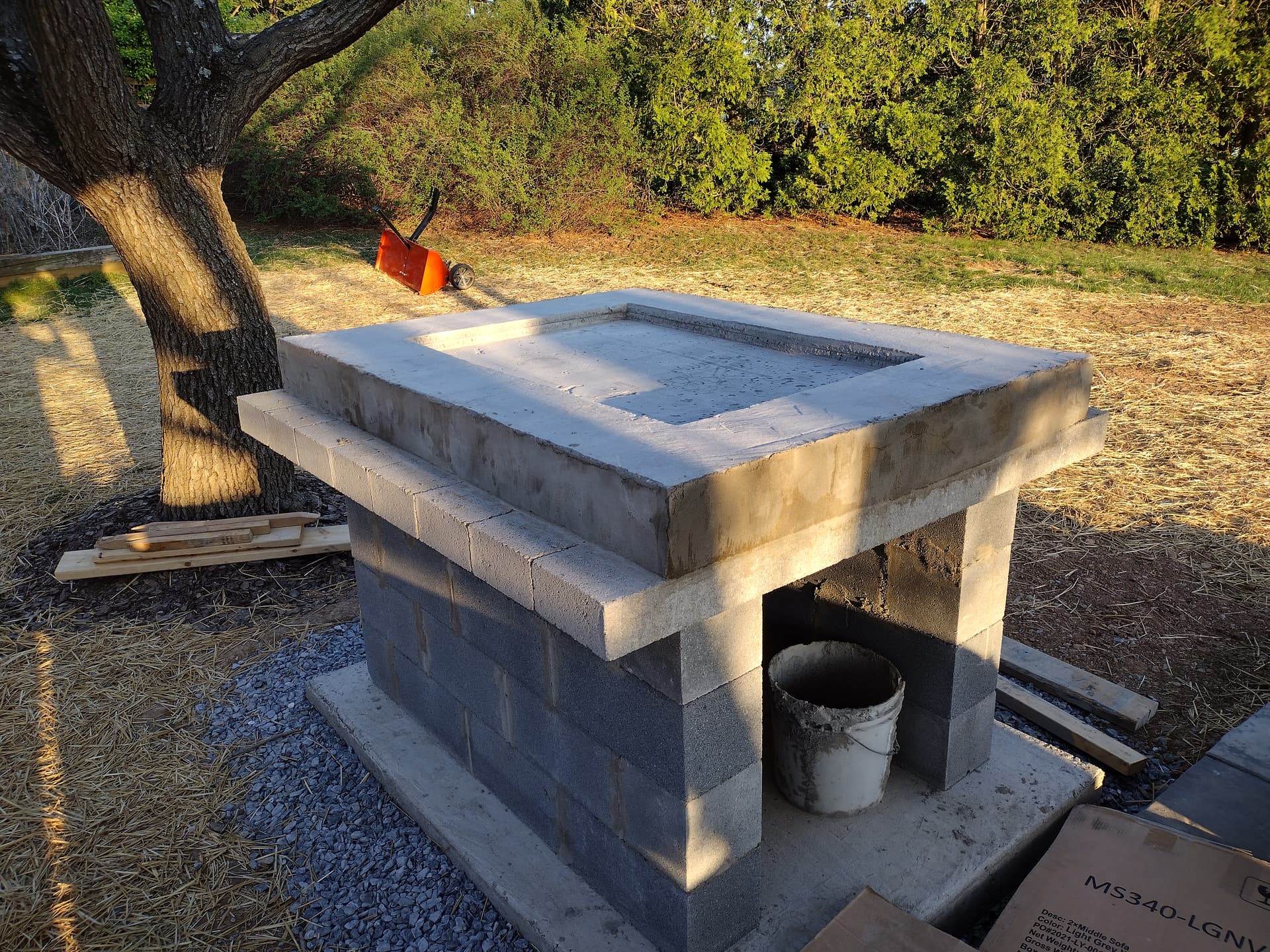 We needed 4 strong able bodied people to lift each of the 3 hearth slabs off the ground on top of the platform - each slab weighed in excess of 300 lbs and lifting it up 4 foot and placing it properly was one of the hardest parts of the job and needed 4 people. Using lintels is a great idea and I would have done it also but we started our oven build a few years ago and had the hearth pieces poured on the ground already…