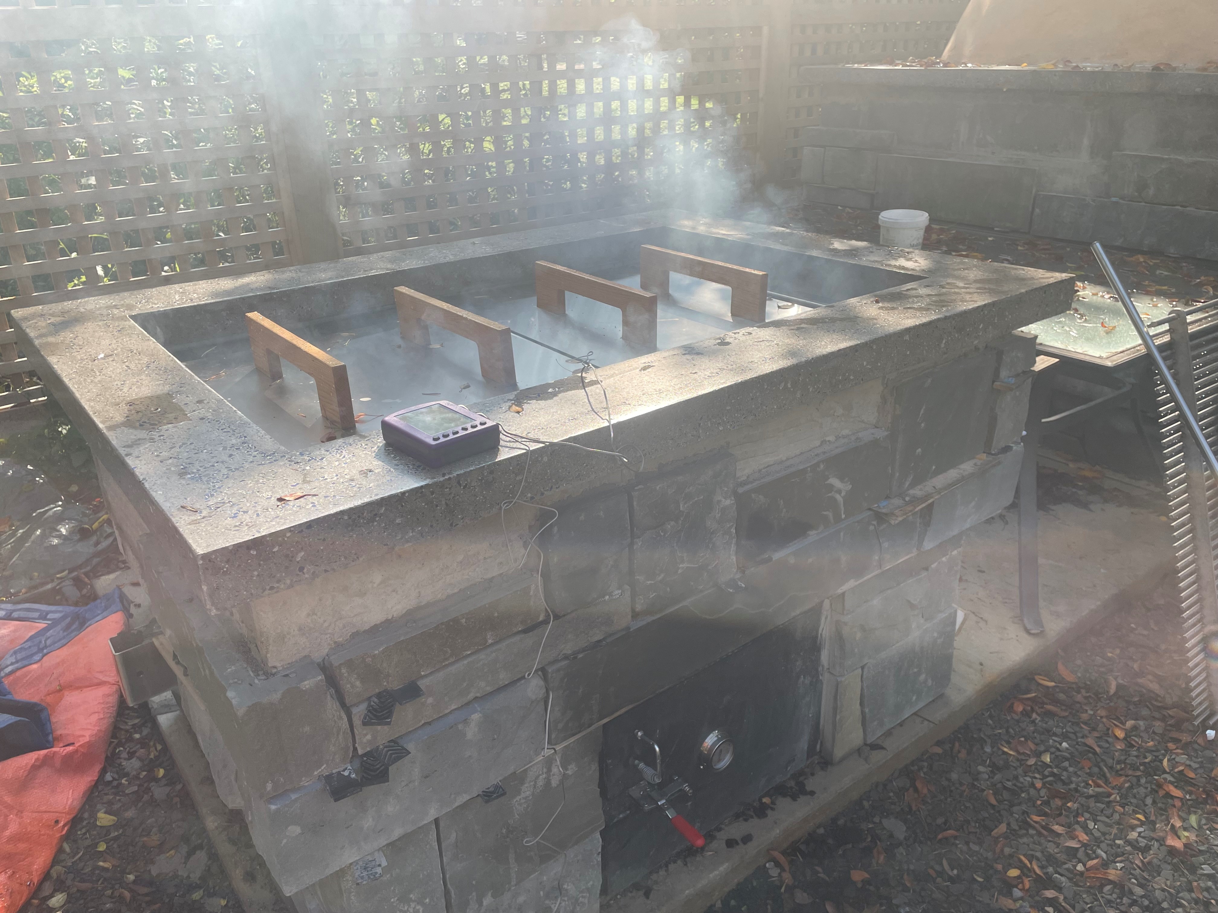 It is concrete. I added some glbutt and polished it. One I poured in place and one in a mold. I have been planning to post all the pics from my build soon and haven’t done it yet (as you can see I am a few stones short of being finished with the veneer, but since its fully operational I have been distracted by cooking and eating!).