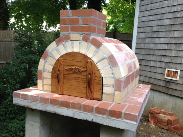 The Napier Family Red & Tan Wood-Fired Brick Oven in Massachusetts